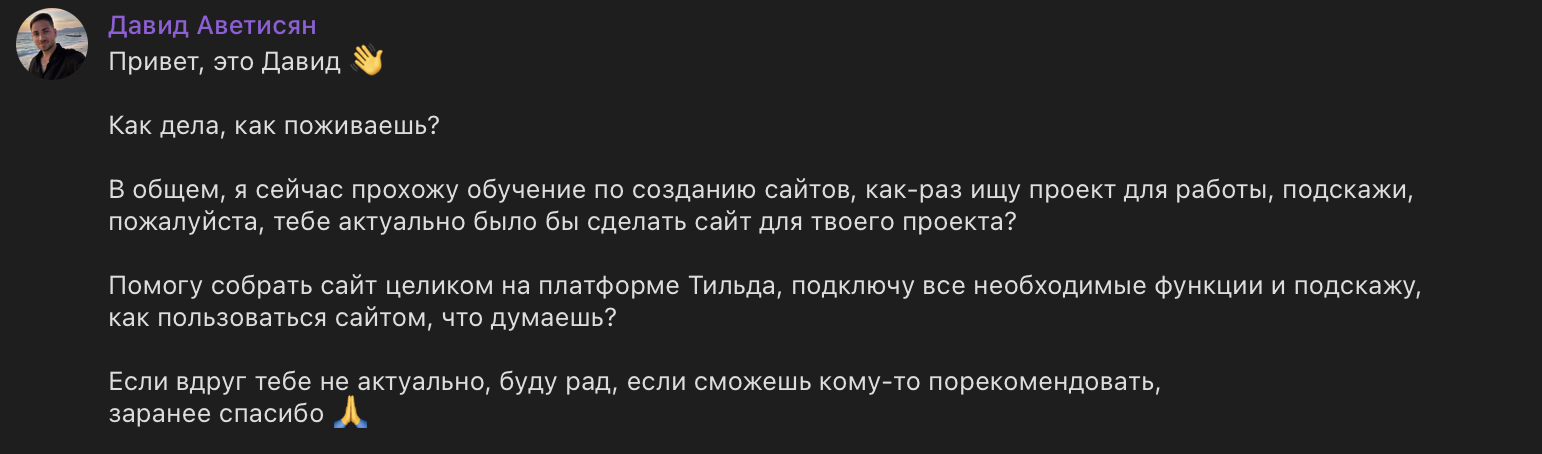Есть ещё 15+ способов, как и где искать клиентов, как с ними списаться, вести диалог, презентовать свои проекты и продать, но на старте начните с простых и проверенных способов